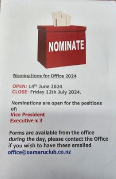 As the AGM approaches, we are calling for nominations for office for 2024 - 2025, these will open 11am Friday 14th June 2024 and close 4 pm Friday 12th July 2024. Nomination forms are available from the office from 11am Monday - Friday or alternatively we can email these to you.