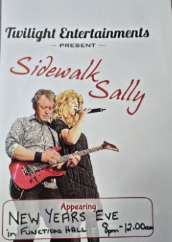 NEW YEARS EVE: We are pleased to bring to you all, Sidewalk Sally from Dunedin in the Hall, doors open @ 7.30 pm