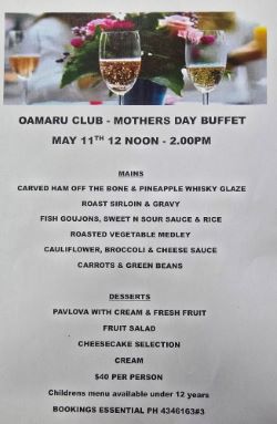 AGM: The Oamaru Club Inc, Annual General Meeting will be held on Sunday 27th July @ 10.00am in the lounge bar. (Hall is being used for a private function).